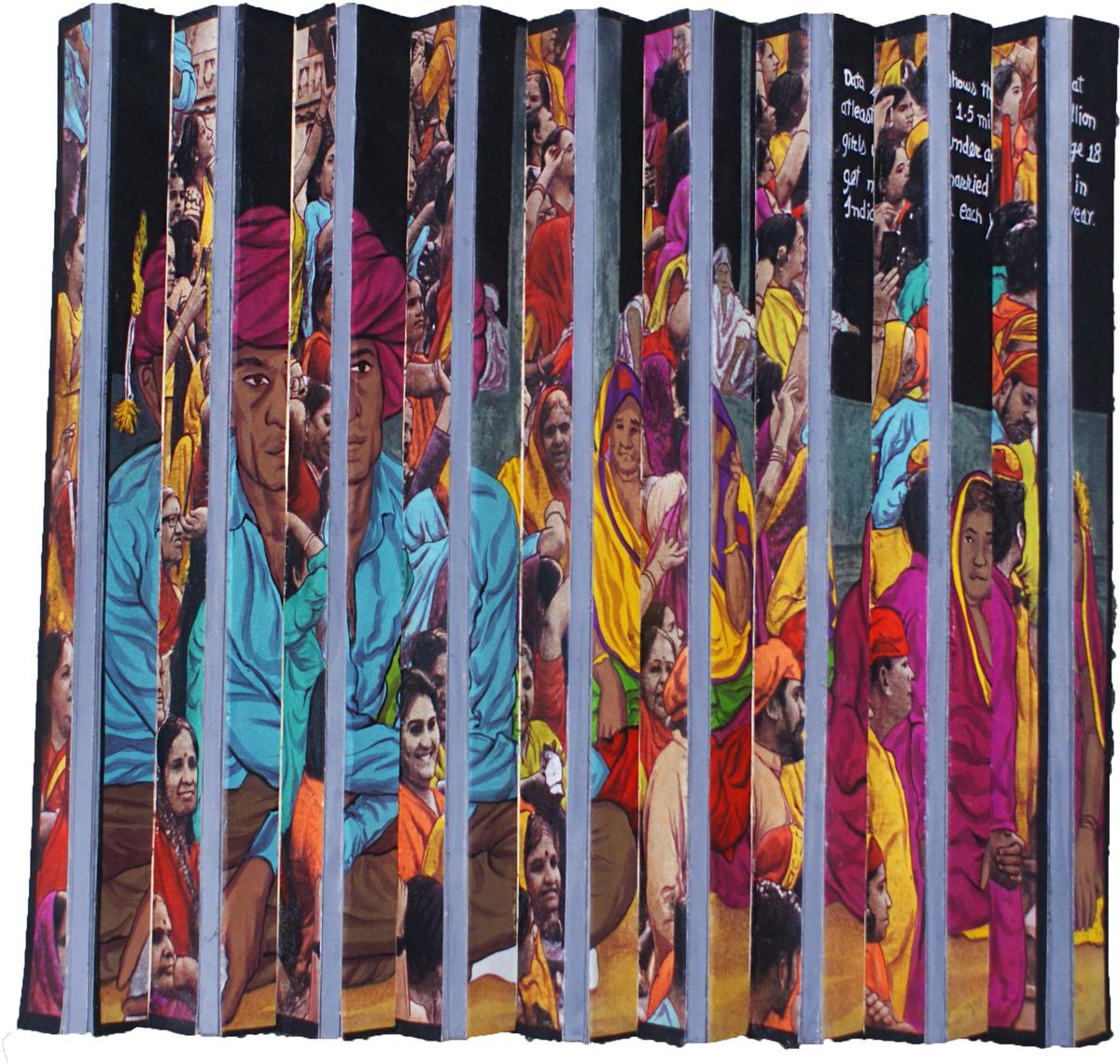 మరోచోట, అవిజిత్ దత్తా యొక్క (ఇండియా ఆర్ట్ ఫెయిర్‌లో కూడా ప్రదర్శించబడిన అదే పేరుగల కళాకారుడితో అయోమయం చెందకూడదు) పనిలో వ్యక్తులు వారి ముఖాలను బ్యాగులతో కప్పి ఉంచారు. మరొక పనిలో, అతను అలంకరించబడిన జైళ్లకు రూపకంగా సమానమైన కాల్చిన కిటికీలతో నివాస స్థలాల గురించి బయటి వ్యక్తి యొక్క వీక్షణను ప్రదర్శించాడు. కోల్‌కతాలోని హౌరా వంతెన సమీపంలోని పారిశ్రామిక ప్రాంతాలలో, అతను కార్మిక శ్రామిక శక్తి మరియు వారు ఉపయోగించే పదార్థాల మధ్య బంధాన్ని వర్ణించాడు మరియు క్రమంగా, వేగవంతమైన పట్టణీకరణ మరియు క్షీణిస్తున్న ప్రకృతి ఉనికిని హైలైట్ చేశాడు.