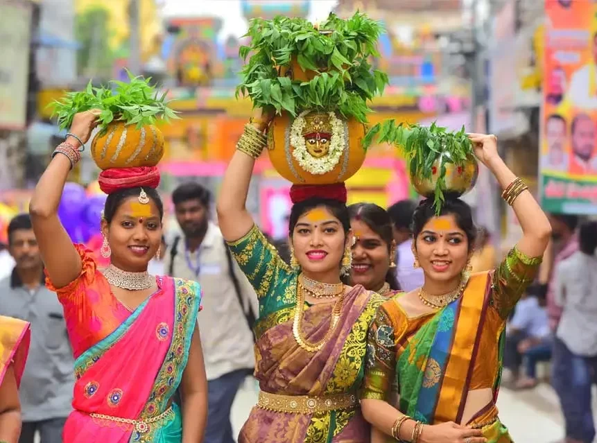 బోనాలు 2024: బోనాలు ప్రతి సంవత్సరం జరుపుకునే సాంప్రదాయ హిందూ పండుగ. హైదరాబాద్ మరియు సికింద్రాబాద్ జంట నగరాలలో ప్రముఖంగా జరుపుకునే రంగుల వ్యవహారం, మహాకాళి దేవిని గౌరవిస్తుంది. సాంప్రదాయ దుస్తులు ధరించిన స్త్రీలు దేవత బోనం సమర్పిస్తారు, ఇది సంస్కృత పదం భోజనం నుండి ఉద్భవించింది, అంటే తెలుగులో భోజనం లేదా విందు. బోనాల సందర్భంగా ప్రజలు మైసమ్మ, పోచమ్మ, ఎల్లమ్మ, పెద్దమ్మ, డొక్కాలమ్మ, అంకాలమ్మ, పోలేరమ్మ, మారెమ్మ, నూకలమ్మ వంటి ప్రాంతీయ రూపాల్లో అమ్మవారిని పూజిస్తారు. 2024లో బోనాలు ఎప్పుడు? బోనాలు 21 రోజుల పండుగ. రాష్ట్రంలోని ఇతర ప్రాంతాలతో పాటు జంట నగరాలైన సికింద్రాబాద్ మరియు హైదరాబాద్ ప్రతి సంవత్సరం ఈ ఉత్సవంలో పాల్గొంటాయి. ఇది జూలై మరియు/లేదా ఆగస్టులో వచ్చే ఆషాడ మాసం నెలలో గమనించబడుతుంది. ఈ ఏడాది జూలై 03 నుండి జూలై 24 వరకు మహంకాళి అమ్మవారికి అంకితం చేయబడిన పండుగను జరుపుకుంటారు. బోనాలు ఎందుకు జరుపుకుంటారు? మహంకాళి దేవిని పురస్కరించుకుని బోనాలు చాలా వైభవంగా మరియు వేడుకగా జరుపుకుంటారు. అమ్మవారికి బోనాలు సమర్పించడానికి ఉత్తమ సమయం ఆషాడ మాసం లేదా జూన్ చివరి నుండి ఆగస్టు వరకు, అత్యంత ప్రసిద్ధ బోనాల పురాణం ప్రకారం. ఇది మహాకాళి దేవి తన పూర్వీకుల నివాసానికి తిరిగి వచ్చినట్లుగా పరిగణించబడుతుంది. పెళ్లయిన కూతురు ప్రతి సంవత్సరం విహారయాత్ర కోసం తన తల్లిదండ్రుల ఇంటికి వెళ్లి శ్రద్ధతో విలాసంగా ఉంటే ఆమెను ఎలా ప్రవర్తిస్తారో ఈ పద్ధతి సమానంగా ఉంటుంది. బోనాలు ఎలా జరుపుకుంటారు? బోనాల పండుగ సందర్భంగా కుటుంబ సభ్యులు మాతృమూర్తికి నైవేద్యాలు సమర్పించి తమ ప్రియమైన వారికి, అతిథులతో పంచుకుంటారు. సాంప్రదాయ చీర, ఆభరణాలు మరియు ఇతర ఉపకరణాలలో మహిళలు ఈ ముఖ్యమైన సందర్భానికి దుస్తులు ధరిస్తారు. యుక్తవయస్సు ఆడవారు చోళీలు, ఆభరణాలు మరియు ఇతర సాంప్రదాయ స్వరాలతో సగం చీరలు లేదా లెహంగాలను ధరిస్తారు. పసుపు-వెర్మిలియన్, కంకణాలు మరియు మాతృ దేవతకు చీరతో పాటు, వారు వేప ఆకులు, పసుపు మరియు వెర్మిలియన్లతో అలంకరించబడిన తాజా ఇత్తడి లేదా మట్టి కుండలో పాలు మరియు బెల్లంతో వండిన ప్రత్యేక అన్నం యొక్క కుండలను తీసుకువెళతారు. బోనాలు మోసిన మహిళలు ఆలయం వద్దకు రాగానే, అమ్మవారి ఉగ్రరూపాన్ని శాంతింపజేసేందుకు ప్రజలు వారి పాదాలకు నీరు పోస్తారు. స్థానిక దేవతను గౌరవిస్తూ, కొంతమంది ట్రాన్స్డ్ లేడీలు డ్రమ్స్ లయబద్ధమైన దరువులకు అనుగుణంగా కుండ నృత్యాలు (బోనం) చేస్తారు. గతంలో దుష్టశక్తుల నుంచి బయటపడేందుకు గుడి ముందు మగ గేదెను బలి ఇచ్చేవారు, కానీ నేడు వాటి స్థానంలో కోళ్లను సమర్పిస్తున్నారు. ప్రతి సంవత్సరం, మహంకాళిని ప్రతిష్టించడానికి వేలాది మంది భక్తులు తరలివస్తారు. ఆషాఢమాస