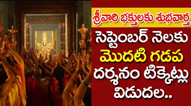 తిరుమల శ్రీవేంకటేశ్వర స్వామివారి దర్శనానికి సంబంధించిన పలు టిక్కెట్లను నేటి నుంచి విడుదల చేయనున్నట్లు తిరుమల తిరుపతి దేవస్థానం (టీటీడీ) అధికారులు ప్రకటించారు. సెప్టెంబర్ నెల దర్శన టిక్కెట్లు 24వ తేదీ వరకు ఆన్లైన్లో అందుబాటులో ఉంటాయి. అందులో భాగంగా నేడు ఆర్జిత సేవా టిక్కెట్లను టీటీడీ విడుదల చేయనుంది. - 21న వర్చువల్ సేవా టిక్కెట్లు - 22న వృద్ధులు, వికలాంగులు, శ్రీవాణి దర్శనం టిక్కెట్లు, అంగప్రదక్షణ దర్శనం టిక్కెట్లు - ప్రత్యేక ప్రవేశ దర్శన టిక్కెట్లు రూ. 300 మరియు 24న వసతి ఎంపికలు అంతేకాకుండా తిరుమల శ్రీవారి ఆలయంలో వార్షిక జేష్ఠాభిషేక మహోత్సవాలు రేపటి నుంచి మూడు రోజుల పాటు జరగనున్నాయి. ఈ క్రమంలో ఆర్జిత సేవలను టీటీడీ రద్దు చేసింది. ఇంకా 22న శ్రీవారి ఆలయంలో పౌర్ణమి గరుడవాహన సేవ, రాత్రి 7 గంటలకు గరుడవాహనం జరుగనుంది. అధిక డిమాండ్ కారణంగా, తిరుమల శ్రీ వేంకటేశ్వర స్వామి దర్శనానికి టిక్కెట్లు విడుదలైన కొద్ది నిమిషాల్లోనే తరచుగా బుక్ చేయబడతాయి. భగవంతుని దివ్య దర్శనాన్ని వీక్షించే అవకాశం కోసం భక్తులు ముందస్తుగా ప్లాన్ చేసుకొని తమ టిక్కెట్లను పొందాలని సూచించారు.