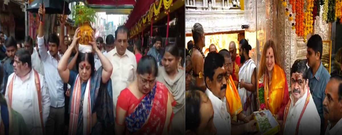 తెలంగాణ కాంగ్రెస్ వ్యవహారాల ఇంచార్జీ దీపా దాస్ మున్షీ, అమెరికన్ కాన్సులెట్ ప్రతినిధి ఈ రోజు సికింద్రాబాద్ ఉజ్జయిని మహంకాళి అమ్మవారిని దర్శించుకొని, దీవెనలు పొందారు. మంత్రి పొన్నం ప్రభాకర్ వారిని ఆహ్వానించారు. దాస్ మున్షీ అమ్మవారికి బోనం సమర్పించారు. ఈ సందర్బంగా ఆమె మాట్లాడుతూ బోనాలకు తెలుగు రాష్ట్రలో ప్రత్యక స్థానం ఉందని తెలిపారు. తెలంగాణ ప్రజలందరూ సుఖసంతోషాలతో ఉండాలని ఆమె కోరారు. బోనాల సందర్బంగా అమెరికన్ కాన్సులెట్ ప్రతినిధి బోనం సమర్పించి మొక్కులు చెల్లించారు. ఆలయ పూజారులు ఆమెని శాలువాతో సత్కరించి అమ్మవారి చీరని బహుమానంగా ఇచ్చారు.
