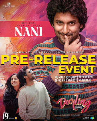 అశ్విన్ రామ్ దర్శకత్వం వహించిన రొమాంటిక్ కామెడీ డార్లింగ్లో ప్రియదర్శి మరియు నభా నటేష్ నటించారు. జూలై 19, 2024న గ్రాండ్ రిలీజ్కి షెడ్యూల్ చేయబడింది, ఈ చిత్రం విస్తృతమైన ప్రమోషన్లతో గణనీయమైన బజ్ని సృష్టించింది. ప్రీ-రిలీజ్ ఈవెంట్ జూలై 15, 2024న హైదరాబాద్లోని పార్క్ హయత్లో సాయంత్రం 6 గంటలకు ప్రారంభమవుతుందని తాజా అప్డేట్ వెల్లడించింది. ఈ వేడుకకు నేచురల్ స్టార్ నాని హాజరుకానున్నారు. సమిష్టి తారాగణం అనన్య నాగళ్ల, మోయిన్, శివా రెడ్డి, మురళీధర్ గౌడ్, మరియు బ్రహ్మానందం కీలక పాత్రలు పోషిస్తున్నారు. ప్రైమ్షో ఎంటర్టైన్మెంట్పై కె. నిరంజన్ రెడ్డి మరియు చైతన్య రెడ్డి నిర్మించిన ఈ చిత్రానికి వివేక్ సాగర్ సౌండ్ట్రాక్ అందించారు.