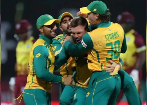 దక్షిణాఫ్రికా: 16.1 ఓవర్లలో 7 వికెట్లకు 124 (ట్రిస్టన్ స్టబ్స్ 29, హెన్రిచ్ క్లాసెన్ 22; రోస్టన్ ఛేజ్ 22; రోస్టన్ ఛేజ్ 3/12 2/19)